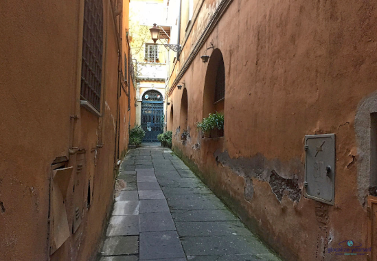 Vieressä sijaitsee samanniminen luostari. Arkitehti Virgino Vespignani Papazzurro Muti oli markiisi ja asui vieressä sijaitsevassa rakennuksessa ja hän rakennutti kappelin tämän kujan päähän ja asetti Maria ikoonin kappeliin. Nykyään asuin- rakennuksen nimi on Palazzo Balestra, mikä on hotelli nykyään. Paikalla on aikaisemmin sijainnut myös kirkko Santa Maria Causa Nostrae Letititae, joka ehkä viittaa Markiisin omistamaan Madonnaan.